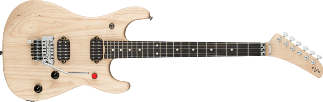オールクロムのハードウェア、ヒールマウントのトラスロッド調整ホイール、EVH(R)ロゴのデカールが付いたホッケースティック型ヘッドストックにナチュラルステインフィニッシュ