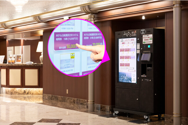 関西エアポート株式会社は、関西国際空港内のホテル日航関西空港に、2022年12月23日(金)より大阪府泉佐野市の「ふるさと納税自動販売機(以下、自販機)」を設置することをお知らせします。