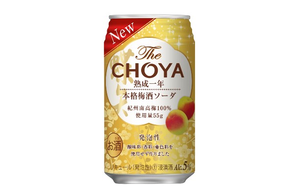 「The CHOYA 熟成一年本格梅酒ソーダ」は、紀州産南高梅を100%使用。本格梅酒「The CHOYA SINGLE YEAR」のソーダ割りをイメージしたスッキリとした味わいと芳醇で華やかな香り、程良い上品な甘みとキレの良い酸味が特長で、食事にも合う次世代の本格梅酒ソーダです。