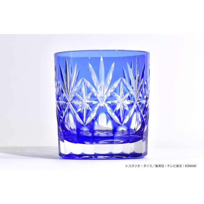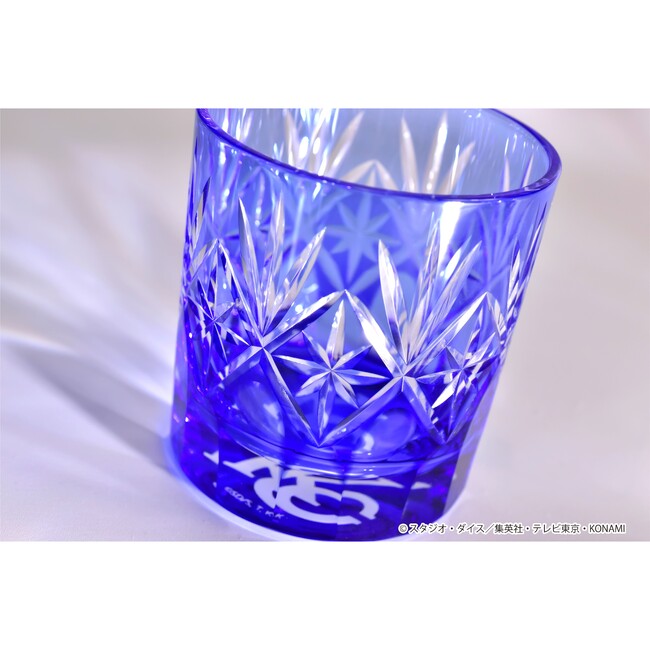 繊細なカッティングが施された切子グラスは、光と影を生かして幾重にもその表情を変えます。その煌めきを目で楽しみ、あるいは自分へのご褒美に美味しいお酒を入れて舌で味わう……。闇遊戯&海馬瀬人の江戸切子グラスを傍らに、最高の一時をお過ごしください。