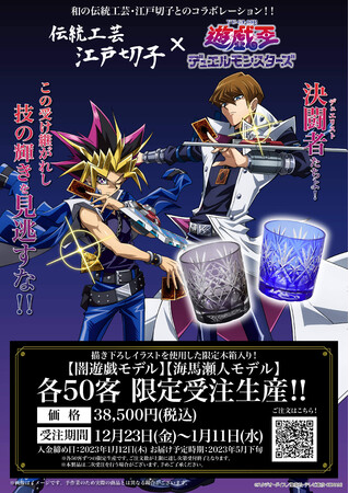 大人気TVアニメ『遊☆戯☆王 デュエルモンスターズ』と、日本の伝統工芸「江戸切子」のコラボが登場!「闇遊戯モデル」と「海馬瀬人モデル」の全2種の切子グラスが、12月23日よりeeo Store(通販)にて限定受注販売されます。
