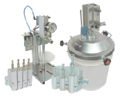 図.給油装置(左より定量供給装置,オードグリースタ,一元式給油装置,ワンウェイ給油装置)