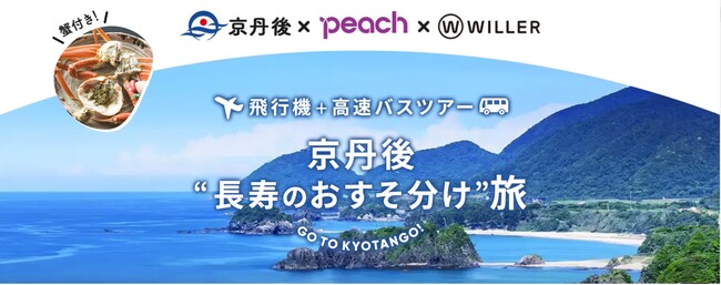 京丹後市(市長: 中山 泰)とPeach Aviation株式会社(以下、Peach、代表取締役CEO: 森 健明)、WILLER株式会社(以下、WILLER、代表取締役: 村瀬 茂高)は、首都圏からの誘客を目指す第一弾として、「京丹後“長寿のおすそ分け旅”」(以下、本商品という)を開発し、本日12月26日、WILLERが運営する予約サイト「WILLER TRAVEL」(https://travel.willer.co.jp/tour/campaign/kyotango/)にて発売しました。