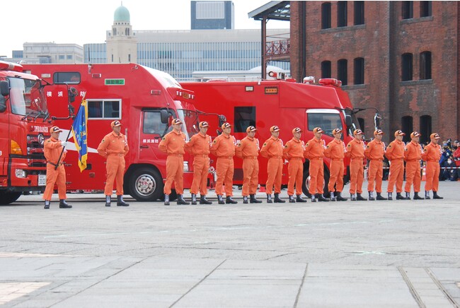 市民が身近に安全・安心を実感できるよう、 横浜を代表する集客施設である「赤レンガ倉庫」周辺において、 横浜の消防力および関係機関と連携した災害対応力等が披露される市内最大級の市民参加型イベント。例年8万人以上の来場があり、2023年は3年ぶりに赤レンガ倉庫で開催します。