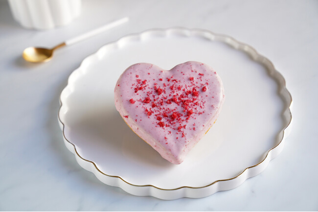 ハートの形をしたデニッシュにホイップクリームと苺ジャムを絞りました。