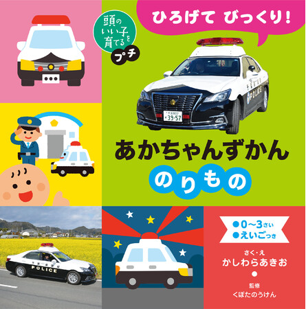 『ひろげて びっくり! あかちゃんずかん のりもの』は、ページをめくると絵本が広がり、同じのりものが4つの見え方で現れる迫力いっぱいの仕掛け絵本。赤ちゃんとのコミュニケーションを促し、好奇心を育てるシリーズとして累計48万部以上を発行している「頭のいい子を育てるプチ」の新ラインナップとして登場しました。のりもの好きな赤ちゃんが愛してやまない「くるま」「でんしゃ」「パトロールカー」「ひこうき」「ふね」「きゅうきゅしゃ」の6種類を厳選。イラストと写真が大迫力で楽しめるので、ページをめくるたびに驚きと喜びがあふれる、ワクワクのつまった図鑑絵本です。