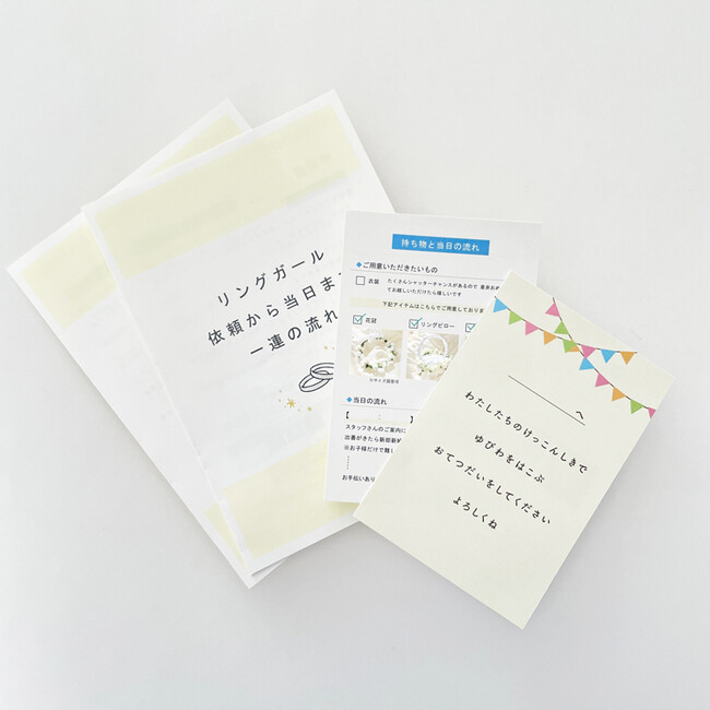 新郎新婦用に、リングガールについての当日の一連の流れを説明したリーフレットがセットになっています。