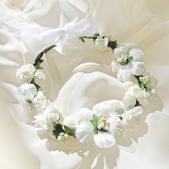 一気に華やかになる花冠は後ろのリボンでサイズ調整ができるので、安心です。