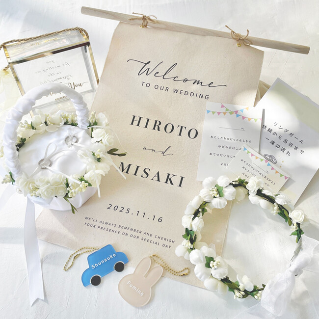 「リングガール・リングボーイ」を親戚の子どもや友人の子どもにお願いをしたいけれど、何を準備したら良いか分からない方や、手間をかけずにアットホームな演出を取り入れたい方におすすめのセットアイテムです。