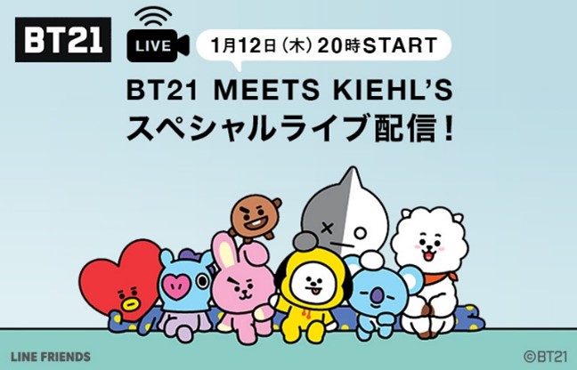 1月12日(木)キールズ公式オンラインストアの特設サイトにて「BT21 MEETS KIEHL’S」スペシャルエディションがどこよりも早く購入できるLIVE SHOPPINGの配信が決定!