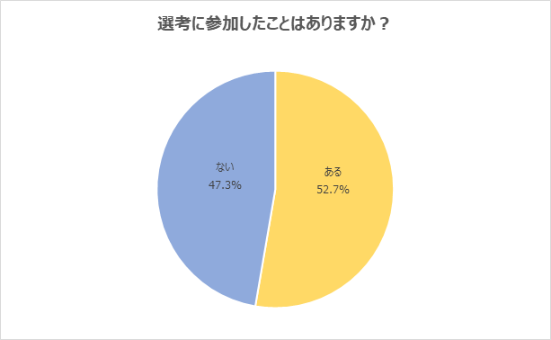 (1)「選考に参加したことがある」と回答した学生が半数を超える