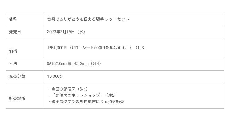 グリーティング切手「音楽でありがとうを伝える切手」の発行および販売品「音楽でありがとうを伝える切手 レターセット」の発売