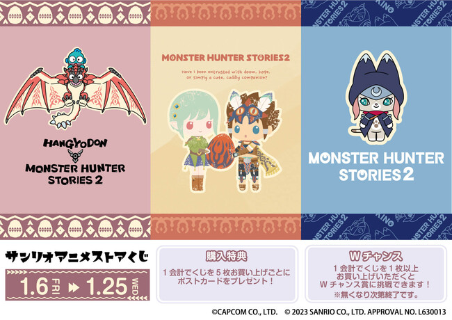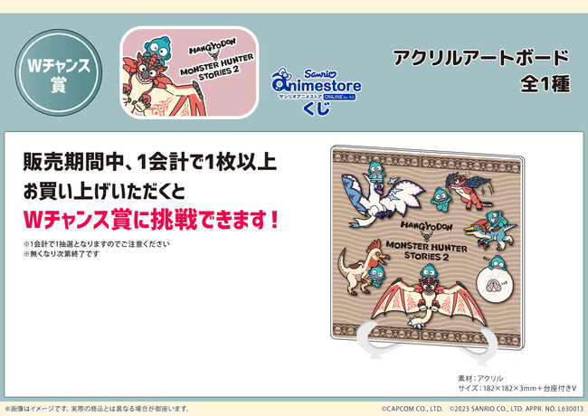「モンスターハンターストーリーズ2 サンリオデザインプロデュース&ハンギョドンコラボデザイン」の「サンリオアニメストアくじ」では、豪華景品のほかにWチャンス賞も!