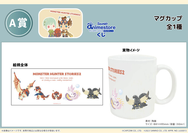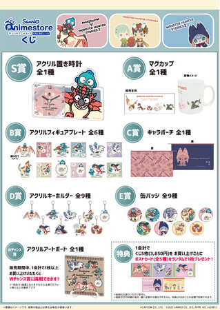 本日から販売スタートとなった「モンスターハンターストーリーズ2 サンリオデザインプロデュース&ハンギョドンコラボデザイン」の「サンリオアニメストアくじ」では、S賞からE賞までの景品が登場します。