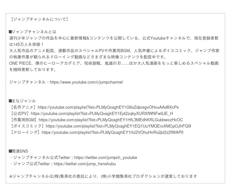 ・ジャンプチャンネル公式Twitter:https://twitter.com/jumpch_youtube