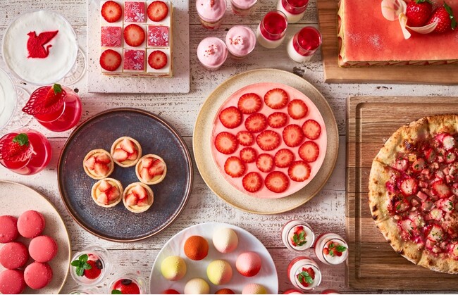 毎年ご好評いただいている当ホテルの期間限定「ストロベリー アフタヌーンブッフェ」は、イチゴの食べ比べができるテイスティングをはじめ、イチゴのムースやフレジェ(ショートケーキ)、イチゴのリゾットやピッツアなど、スイーツからセイヴォリーまで、旬のイチゴの味わいを存分にご堪能いただける内容となっております。