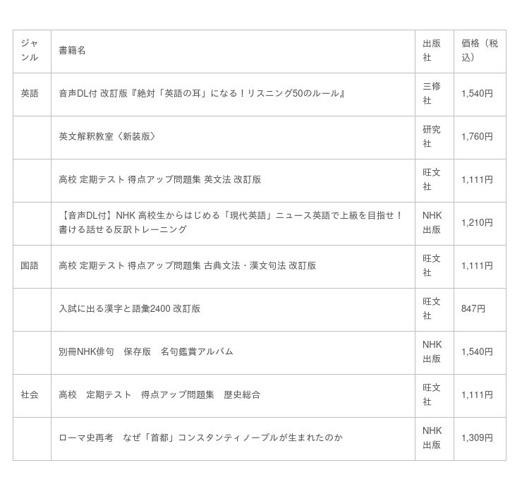 旺文社、研究社、三修社、東京書籍、NHK出版