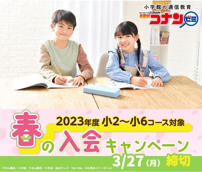 株式会社小学館集英社プロダクションが運営する「小学館の通信教育 名探偵コナンゼミ」では、2023年1月11日(水)から、4月に新学年を迎えるお子さま向けに「春の入会キャンペーン」を実施します(※1)。