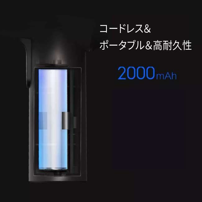 2000mAhの大容量リチウムイオンバッテリー搭載。