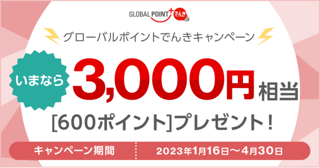 三菱UFJニコスは1月16日から4月30日まで、三菱UFJカードの個人会員向け優待特典「グローバルポイントでんき」への新規加入でもれなく3,000円相当のポイントを進呈するキャンペーンを実施します。