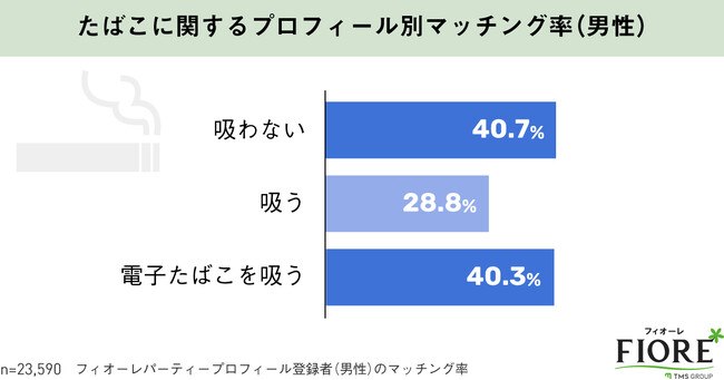 TMSグループの結婚相談所フィオーレ(https://www.total-marriage.com/)は、1月13日のたばこの日に合わせて、婚活パーティーの「フィオーレパーティー」参加者データより、たばこに関するプロフィールの違いに沿ったマッチング率を調査。合わせてアンケートによる意識調査を実施いたしました。