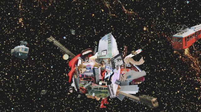 新宿のカオスな世界観やミックスされたカルチャーを、アーティストの五反田和樹氏を招き、コラージュアートの映像と細かい音のコラージュで表現。