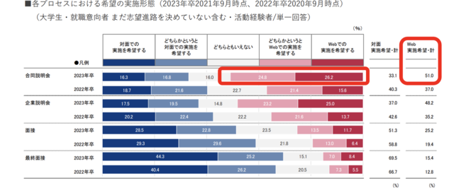 参考:合同説明会をWEBで実施して欲しい学生の割合が初の50%超え(増加傾向)