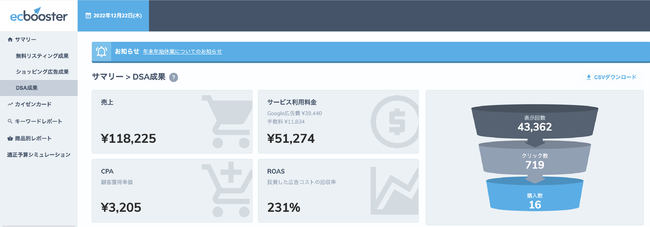 EC Booster独自の成果改善機能も搭載し、業務効率化と集客力向上を同時に実現