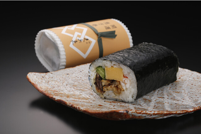 江戸前寿司の名店「銀座久兵衛」。香ばしく焼き上げた穴子、芝海老のすり身を合わせた滑らかな食感の玉子焼きなど、五種類の具材が入った毎年人気の恵方巻です。