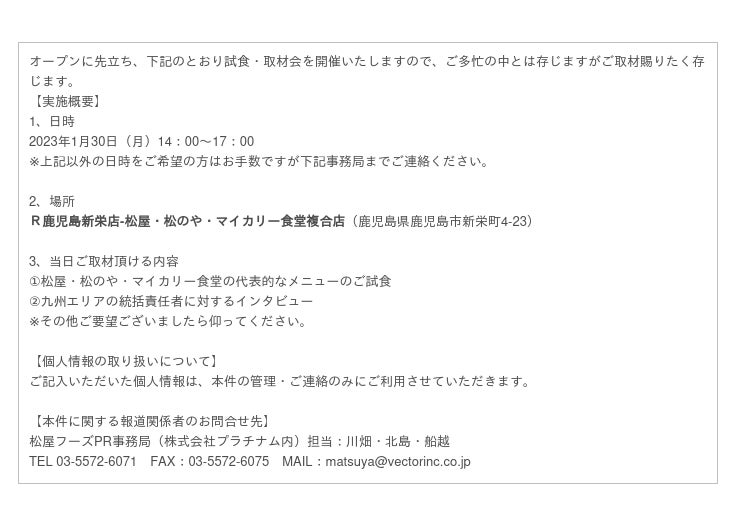 「株式会社松屋フーズホールディングス」のプレスリリース