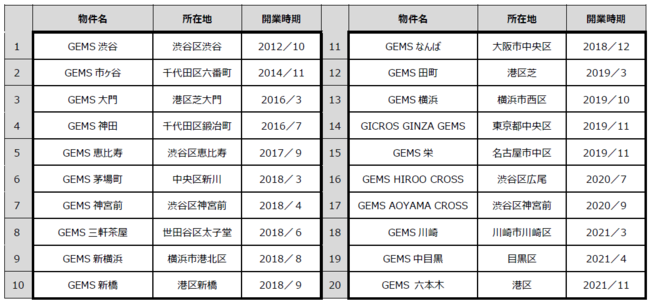 ■開発プロジェクト一覧(計20 施設) 公式HP:http://www.gems-portal.com/