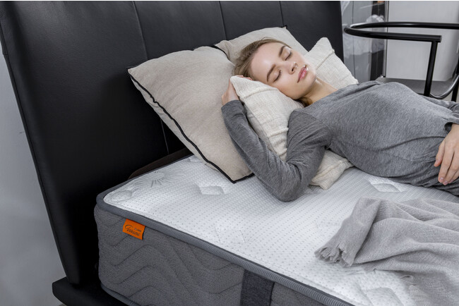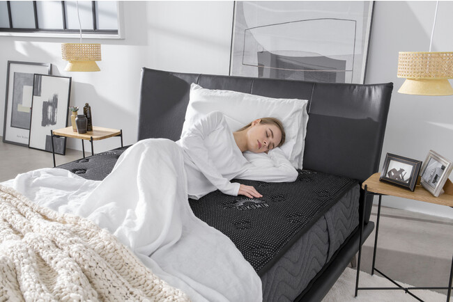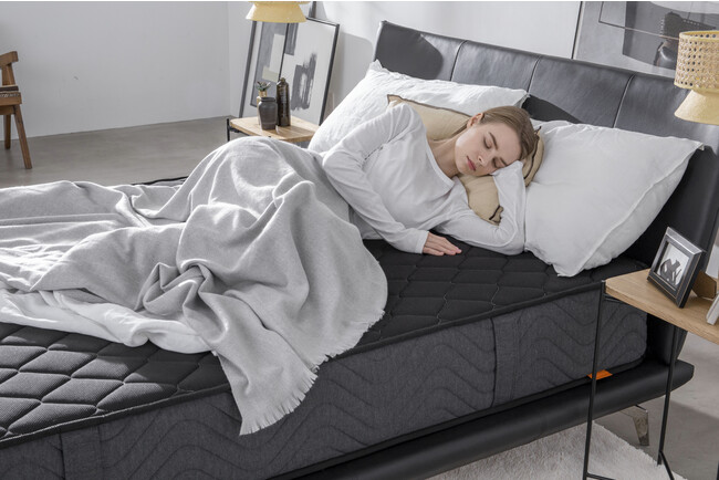 3.両面仕様の天面生地は抗菌・防臭加工を施したニットとメッシュ、キルトの仕様もジャンプキルトと連続キルトと変えており、お好みに合わせてお選びいただけます。また両面仕様なので上下表裏の入れ替えをローテーションですることで寿命をより長持ちさせることが可能。マットレスの厚みは24cmと極厚仕様。厚みが増すほどクッション性が高くなり、へたりにくさも期待できます。