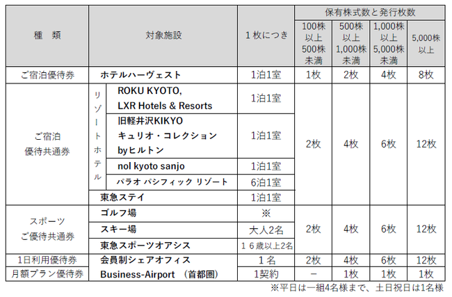 「5,000株~」区分の進呈額を拡充し、「10,000株~」「15,000株~」「20,000株~」の3区分を新設いたします。また、本制度の対象かつ10,000株以上保有されている株主さまには、各種特典・サービスが受けられる「東急こすもす会」入会資格を付与いたします。