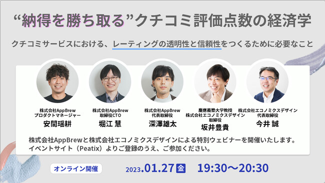 【1月27日(金)19:30~】エコノミクスデザインとAppBrewが、共催ウェビナー「"納得を勝ち取る"クチコミ評価点数の経済学」を実施
