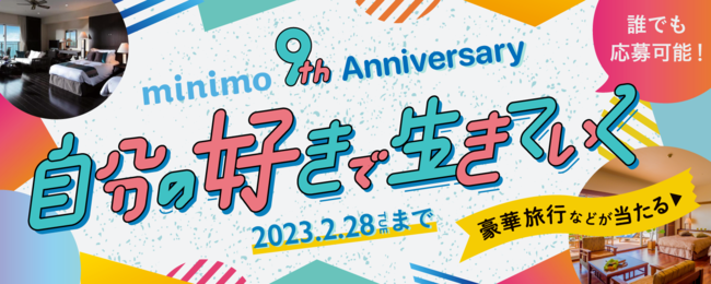そのほか、日頃からご愛顧いただいている皆様へ感謝の意を込め、9周年を記念した2つのキャンペーンを開催します。「“あなたの好き”プレゼントキャンペーン」は、アプリをダウンロードしている方なら誰でも応募可能なキャンペーンです。アプリ内のキャンペーンページから応募いただいた方の中から、抽選で「プランナーさんがあなたと一緒に考えるあなただけの旅」と「ミニモ限定パッケージ サロンレディ シャンプー&ヘアマスクセット」をプレゼントします。