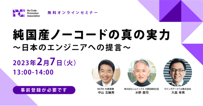 ノーコード推進協会(NCPA)主催の無料セミナー『純国産ノーコードの真の実力 ~日本のエンジニアへの提言~』を2023年2月7日に開催