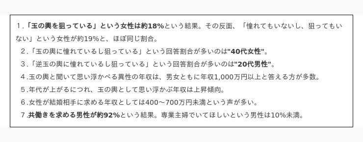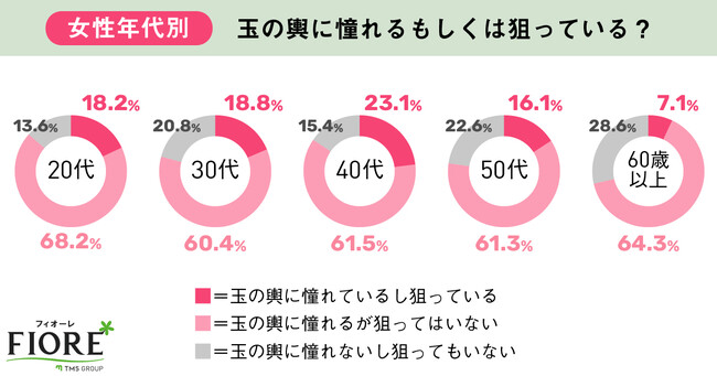年代が上がるにつれ、玉の輿のハードルは上がる傾向になっています。