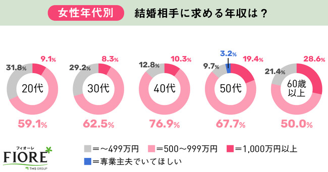年代別でみても、約8割の男性が「年収500万円未満」はお相手に求めるという回答が目立ちました。