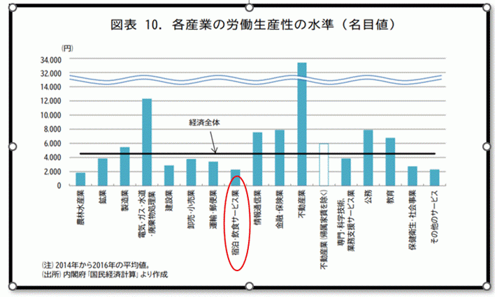 宿泊業の労働生産性は低い水準。※内閣府資料1.