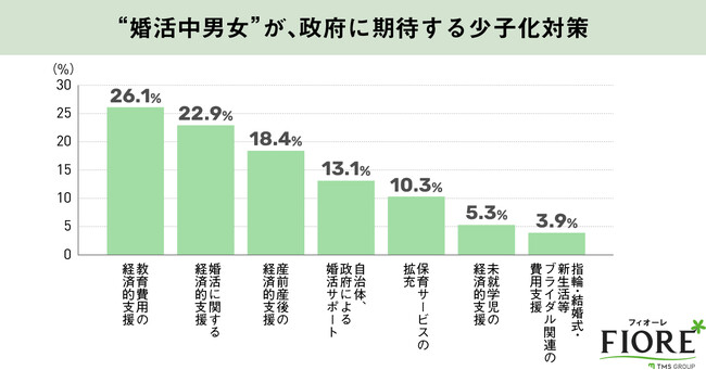 TMSグループの結婚相談所フィオーレ(https://www.total-marriage.com/)は、婚活中の男女に、政府に期待する少子化対策についての意識調査を実施いたしました。