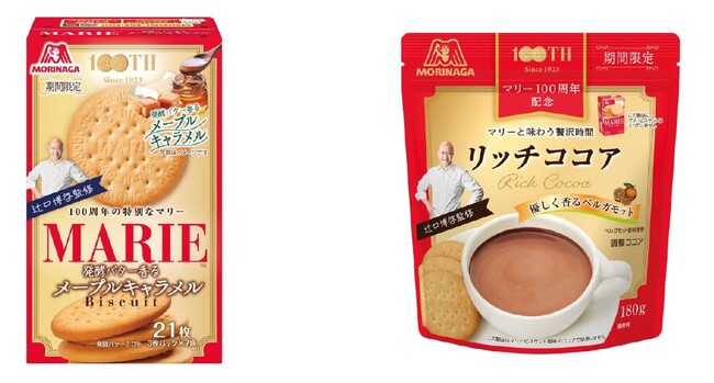 森永製菓株式会社(東京都港区芝、代表取締役社長・太田 栄二郎)は、1923年より発売の「マリー」が100周年を迎えることを記念し、「マリー<発酵バター香るメープルキャラメル>」「リッチココア<マリーと味わう贅沢時間」の2品を辻口シェフ監修のもと、2023年1月31日(火)より新発売いたします。