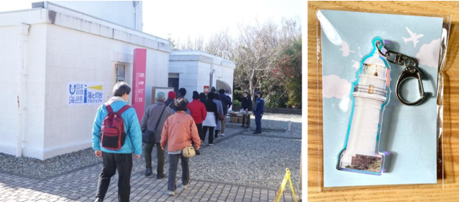 またこの日はオリジナルグッズとして灯台のアクリルキーホルダーを配布。さっそくカバンに付ける人もいて、灯台を身近に感じるきっかけとなったようです。