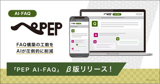 延べ1,000社以上にAIチャットボットを提供する株式会社ギブリー(本社:東京都渋谷区、代表取締役社長:井手高志、以下ギブリー)は、1月30日(月)にQ&Aを入れ込むだけで誰もが簡単に高性能なFAQサイトを構築できる新サービス「PEP AI-FAQ」β版をリリースすることをお知らせします。