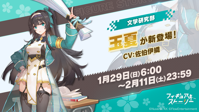 Nuverse株式会社は、運営するスマートフォン向け“フィギュアRPG”『フィギュアストーリー(以下ギアスト)』において、1月29日(日)に新フィギュア(キャラクター)の「玉夏(CV:佐伯伊織)」、および関連するシナリオイベントを実装いたしました。また、新フィギュアの実装を記念し、玉夏のフィギュアピースが抽選で当たるTwitterキャンペーンを行います。