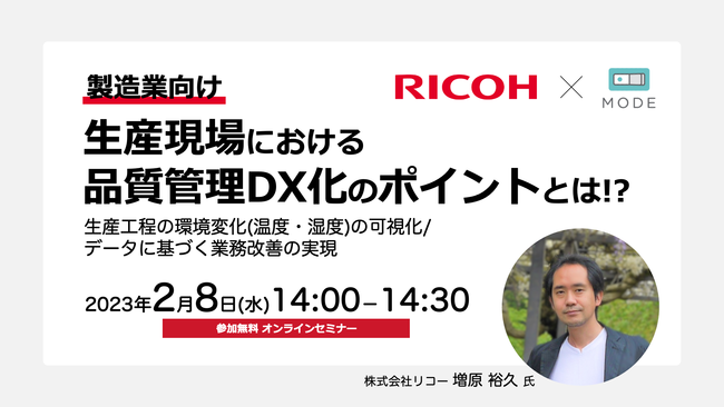 株式会社リコー×MODE共催!製造業向けウェビナー「生産現場における品質管理DX化のポイントとは!?生産工程の環境変化(温度・湿度)の可視化/データに基づく業務改善の実現」を開催します