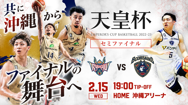 琉球ゴールデンキングスにとって6度目の挑戦となる今大会は、昨年Bリーグ準優勝の成績を収めた為、準決勝からの出場となります。昨年は初のベスト4へ駒を進めるも、惜しくも準決勝で千葉ジェッツに敗退。約100年の歴史を持つ天皇杯において未だかつて沖縄県勢の優勝はない状況。悲願の沖縄県勢初優勝を目指し、チーム一丸となり、沖縄を愛する皆さまの想いを胸にセミファイナルを沖縄アリーナで戦います。そして、初の天皇杯ファイナルの舞台を勝ち取れるよう戦います。琉球ゴールデンキングスへの応援をよろしくお願いいたします。