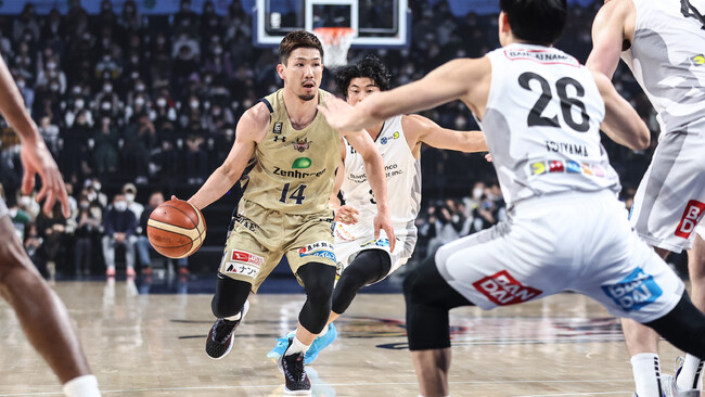 天皇杯の前哨戦ともなったリーグ戦の直接対決では、GAME1に横浜BCの速い攻守の切り替えから得点を重ねられ悔しい敗戦、GAME2では#14 岸本隆一選手が4本のスリーポイントを含む18得点、7アシストと躍動しアウェーで勝利を収め、1勝1敗となりました。