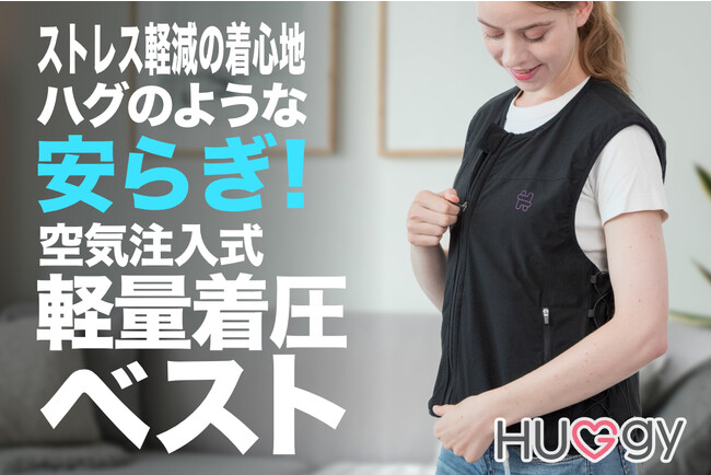 ハグされるような心の安らぎを与えてくれる空気注入式の軽量着圧ベスト「HUGgy」 CAMPFIREにて販売開始