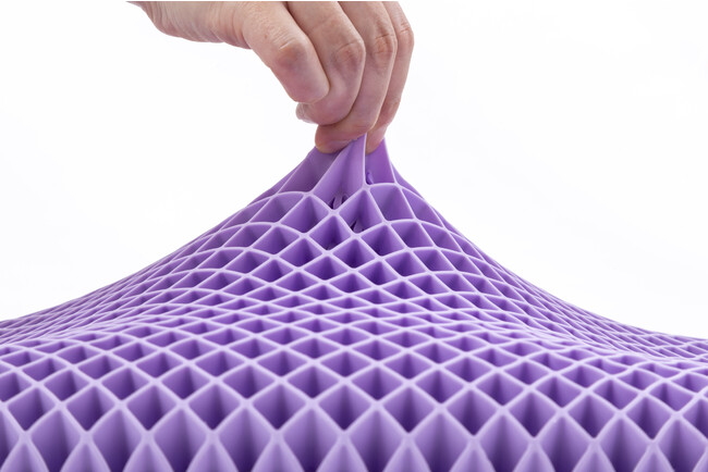 1.新感覚の高機能ジェル素材が、宙に浮いたような無重力の寝心地を実現。医療器具にも使用されるTPE(熱可塑性エラストマー)素材は、丈夫で柔らかく、しなやかな弾力性があるのが特徴で、首や頭の形状にも吸い付くようにフィットします。本体形状は体圧を効果的に分散する特殊立体3層構造。密度・大きさの違う格子が3層になっており、柔らかすぎることなく、首や頭部をしっかり支えて体の負担を軽減、快適な寝姿勢を実現します。