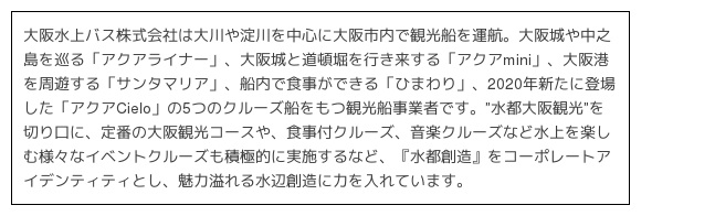 「大阪水上バス株式会社」のプレスリリース